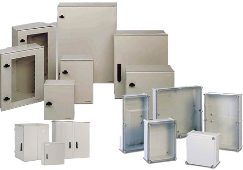 Glass-fibre Reinforced Polyester range of boxes with transparent or opaque cover.