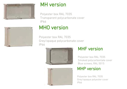 MH 66A | E234066-A | 540x540x201 | Polyester box RAL-7035 with transparent polycarbonate cover |